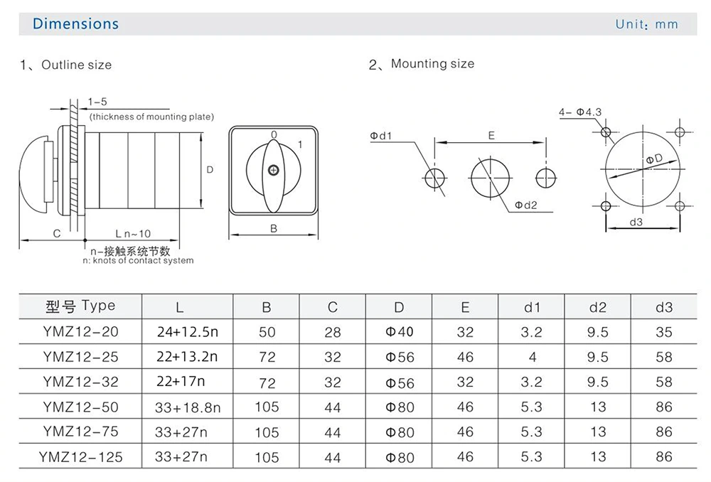 Med mer än 30 års yrkeserfarenhet är Zhejiang Yaming Electric en ledande tillverkare av elektriska strömbrytare av högsta kvalitet, med stöd av stark teknisk kapacitet och ett omfattande kvalitetsledningssystem. Vår 125A trepositionskombinationsroterande kamomkopplare LW31 (intern kod: YMZ12-125), integrerar utsökt hantverk och avancerad teknik, och är utrustad med anti-felfunktioner för att leverera stabil och effektiv kretskontroll.