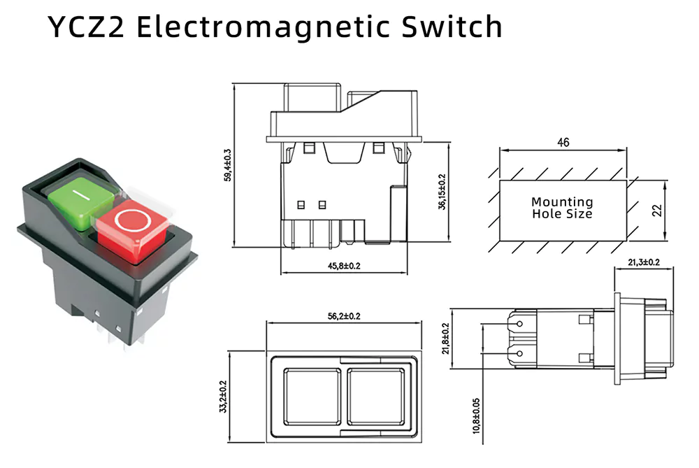 YCZ2-D 16A Medium Push Button Electromagnetic Switch är skräddarsydd för industriella arbetsförhållanden och har integrerat skydd mot strömavbrott och underspänning, vilket undviker oväntat enhetsfel och bibehåller en stabil drift.
