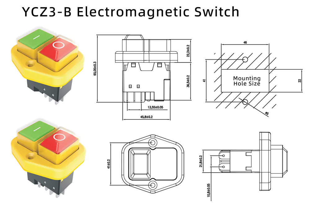 Med mer än 30 år av djupgående produktionsackumulering inom elindustrin, framstår Zhejiang Yaming Electric som en kinesisk fabrik i toppklass. Våra pålitliga elektriska omkopplare har fått ett brett erkännande bland globala kunder för stabil prestanda. Anpassat OEM-samarbete och integrerade stödjande lösningar erbjuds för att tillgodose internationella bulkköpare och företagskunder. Modell YCZ3-B, 16A Yellow Wide Diamond Push Button Electromagnetic Switch, tillverkas med sofistikerat hantverk och strikt övergripande kvalitetskontroll. Lång livslängd, överlägsen prestanda för tung last och utmärkt vattentät och dammtät tätning är dess kärnfördelar. Förinställda externa stickkontakter möjliggör snabb matchning med termiska överbelastningsanordningar, gränslägesbrytare, temperaturkontrollkomponenter och sensorer för ett allsidigt kretsskydd. Den realiserar snabb huvudströmavbrott under mekaniska avvikelser, vilket i hög grad förebygger industriella säkerhetsolyckor.
