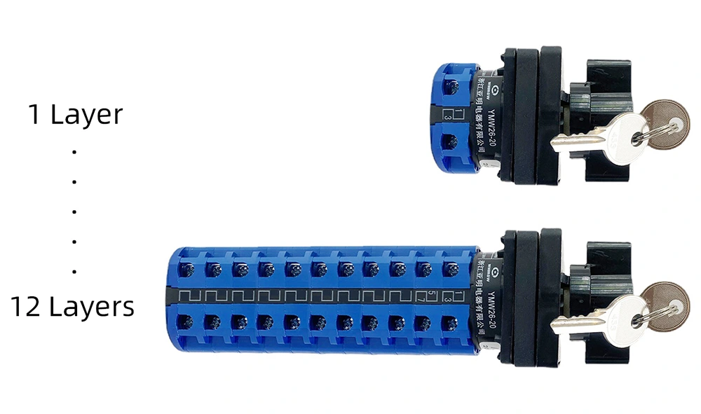 20A Key Rotate Changeover Switch har utmärkt miljöanpassning och flexibla anpassningsmöjligheter, som kan möta olika behov inom huvudkretsomvandling, motorstyrning, mätning och andra scenarier. Som en pålitlig Kina-baserad leverantör har YAMING åtagit sig att tillhandahålla högkvalitativa switchtillbehör för att förbättra industriell kontrolleffektivitet och utrustningsprestanda, och ser fram emot att samarbeta med globala partners.