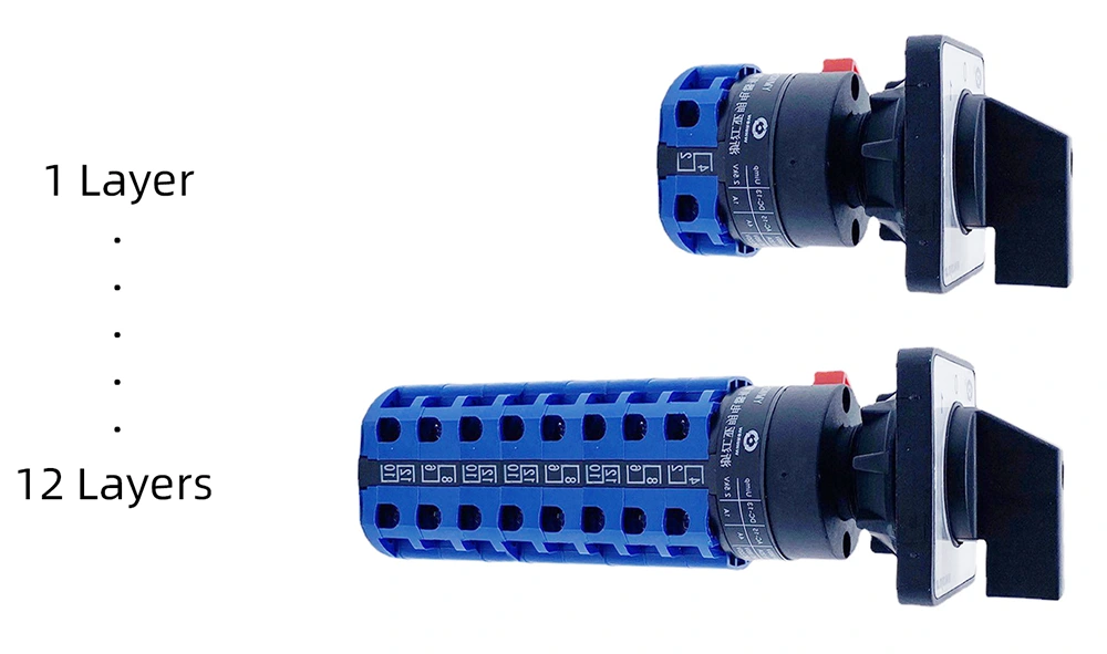 Denna kamomkopplare är speciellt anpassad för AC 50Hz-kretsar med en maximal spänning på 690V och DC 240V-kretsar med en märkström på upp till 20A. Den stöder flera funktionella applikationer, inklusive traditionell kretsstyrning/konvertering, direkt liten AC-motorstyrning, huvudkommandokontroll och kretsmätning, vilket visar stark kompatibilitet med olika elektriska system.
