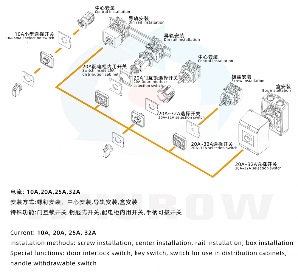 - Utmärkt isoleringsprestanda: Använder rigoröst materialval och en tät strukturell design, ger utmärkt isoleringsprestanda, förhindrar effektivt elektriska faror och säkerställer övergripande elektrisk säkerhet. - Flexibel och smidig drift: Omkopplaren erbjuder flexibel och smidig växlingsfunktion, minskar driftssvårigheter och förbättrar effektiviteten, samtidigt som utrustningens stilleståndstid som orsakas av driftsfel minimeras.