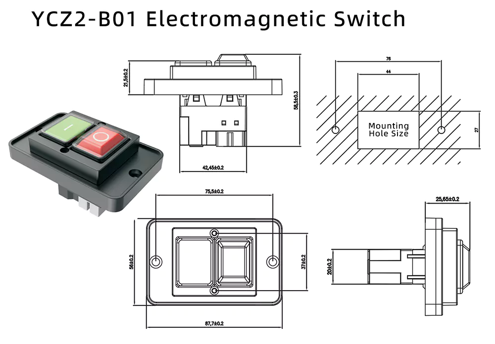 Byggd för industriella kontrollscenarier, kommer vår 8A stora elektromagnetiska tryckknappsbrytare (modell: YCZ2-B01) med inbyggt strömavbrottsskydd och underspänningsskydd för att effektivt skydda mot plötsliga skador på utrustningen.