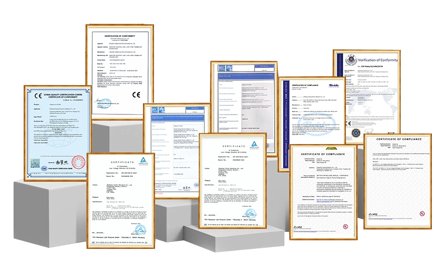 När det gäller kvalitetskontroll har företaget godkänt ISO9001 kvalitetsledningssystemcertifiering, nationell 3C-certifiering, såväl som Tysklands TUV, EU CE, USA UL och andra internationella auktoritativa certifieringar, och i linje med ROHS miljöstandarder.