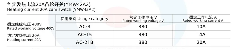 - 32A Cam Switch: Antar samma positioneringsvinklar på 30°, 45°, 60°, 90° som 20A-modellen, med maximalt 12 driftlägen och 1–12 switchlager. Den har starkare strömbärande kapacitet, lämplig för tillfällen med högre effektbehov.